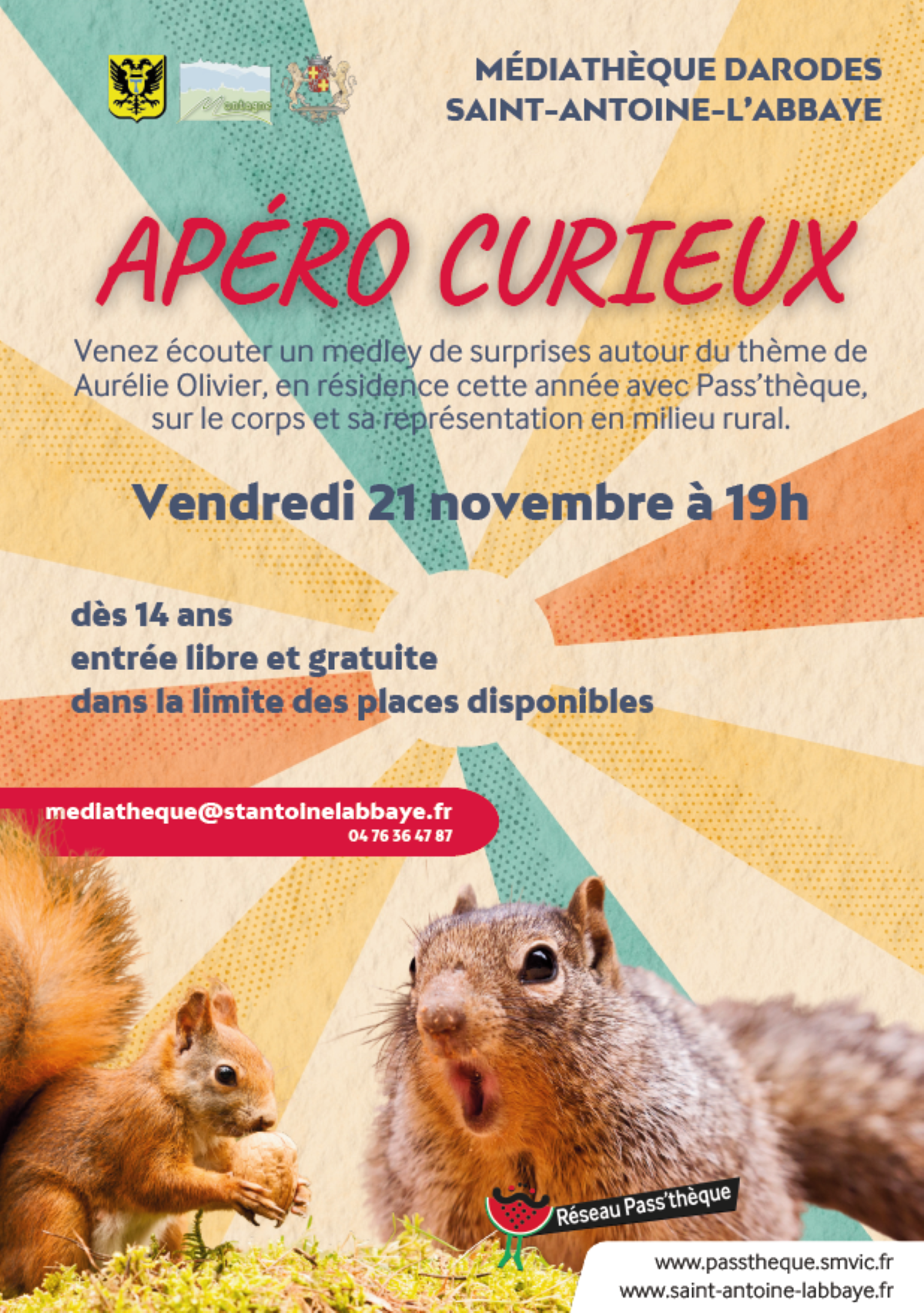 Animation gratuite, dès 14 ans, réservation non obligatoire, durée environ 45 minutes. Venez tenter l'écoute à l'aveugle d'une sélection d'oeuvres littéraires, radiophoniques, musicales, en lien avec le thème du corps chez les adolescents, confortablement installés au chaud à la médiathèque de St Antoine l'Abbaye. Un léger apéro sera servi en fin d'écoute et un échange sera possible avec les intervenantes.