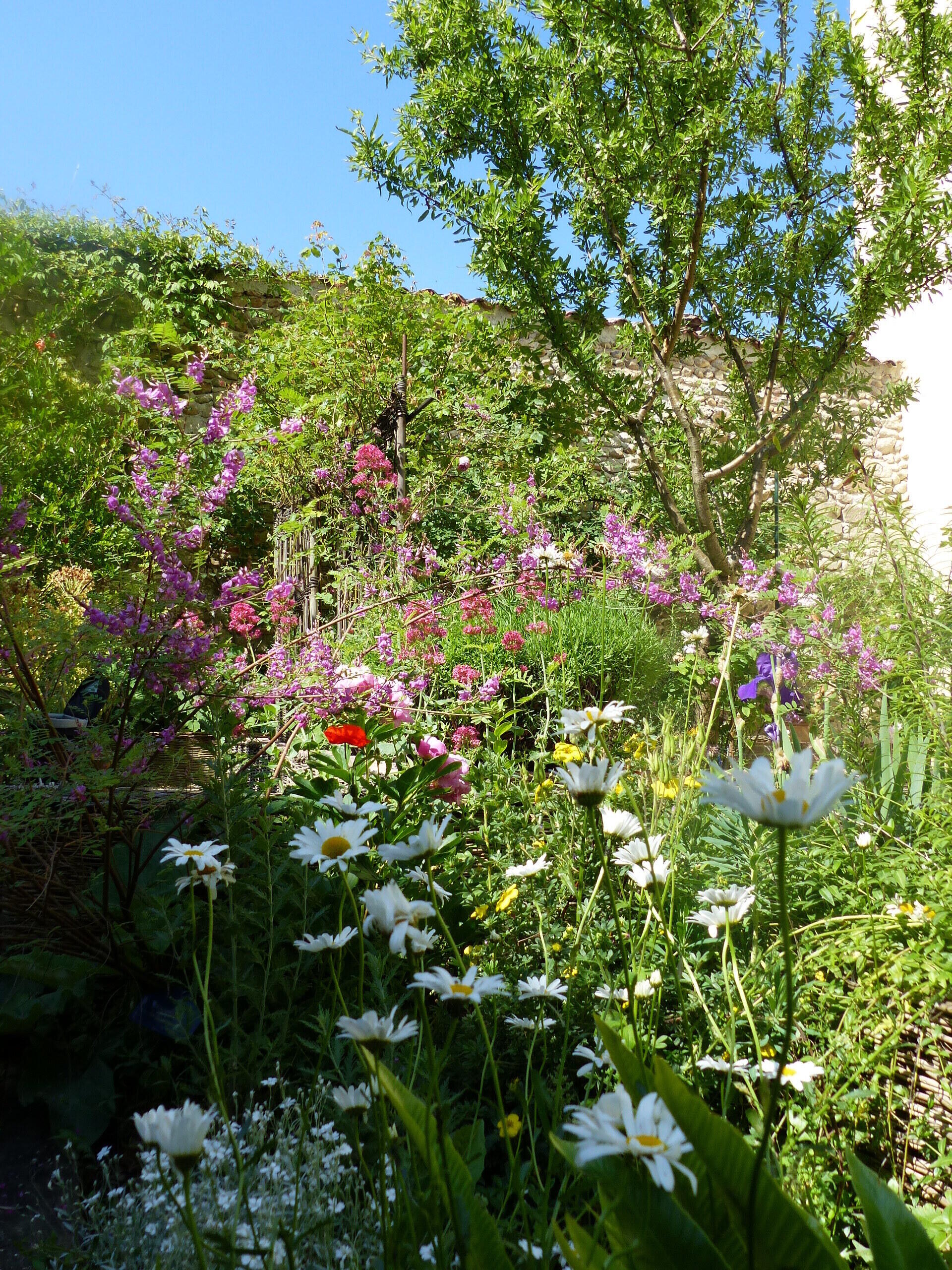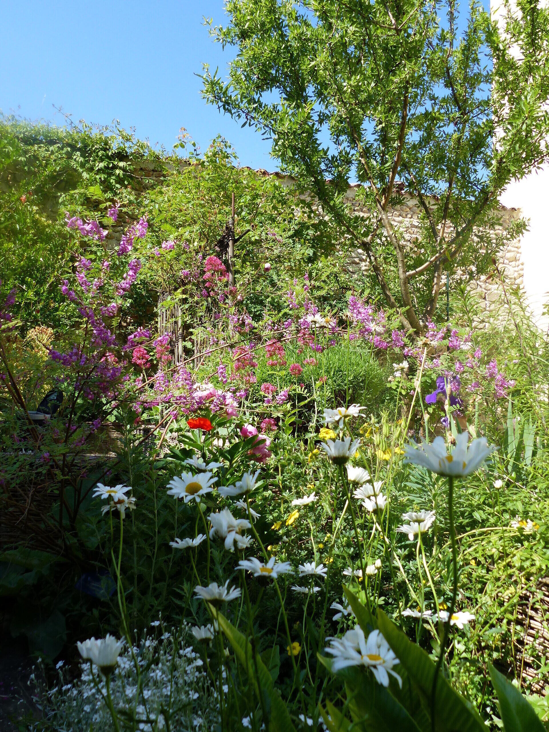 Quatre jardins, quatre histoires, quatre haltes ponctuées de plantes exubérantes, d'herbes aromatiques, de fleurs et d'arbres fruitiers réunis par l'eau d'une fontaine et de bassins, élément inhérent et fondateur de l'essence même du jardin.